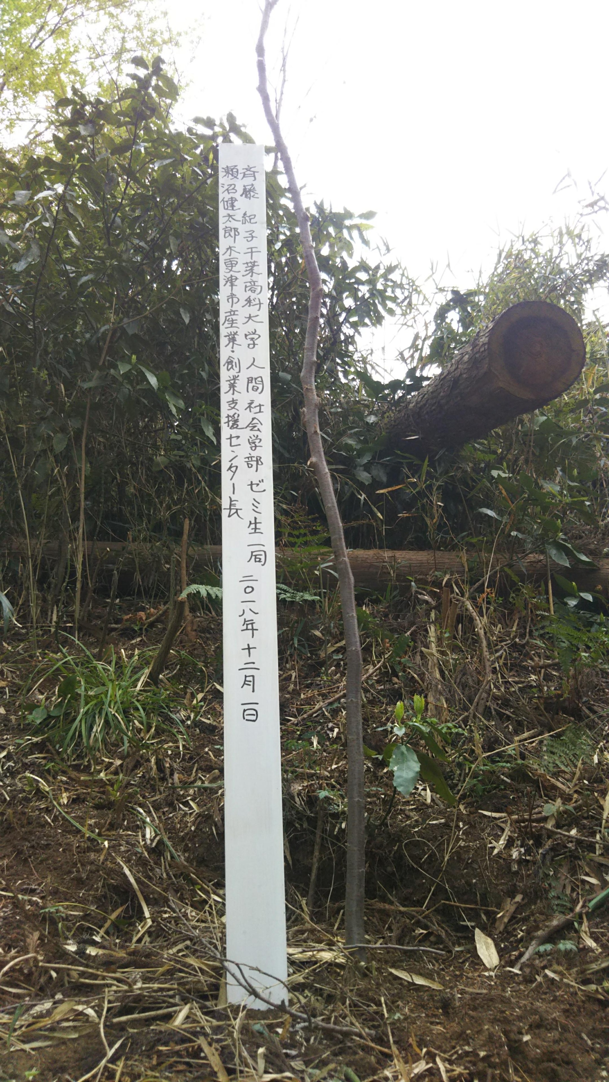 感染状況が酷くなり、千葉県にも緊急事態宣言が発令された状況下、千葉商科大学齊藤ゼミメンバーは摘み取りに伺うことができず、大変残念でした・・・できれば太陽の光降り注ぐ中で汗をかきかき、ブルーベリーの果実を自分の手で摘み取ってその甘さを実感したり、園内のビオトープで涼んだり、江澤さんとともに植えた齊藤ゼミの桜の苗木(下の写真)の生育状況を確認したりしたかったのですが・・・!
